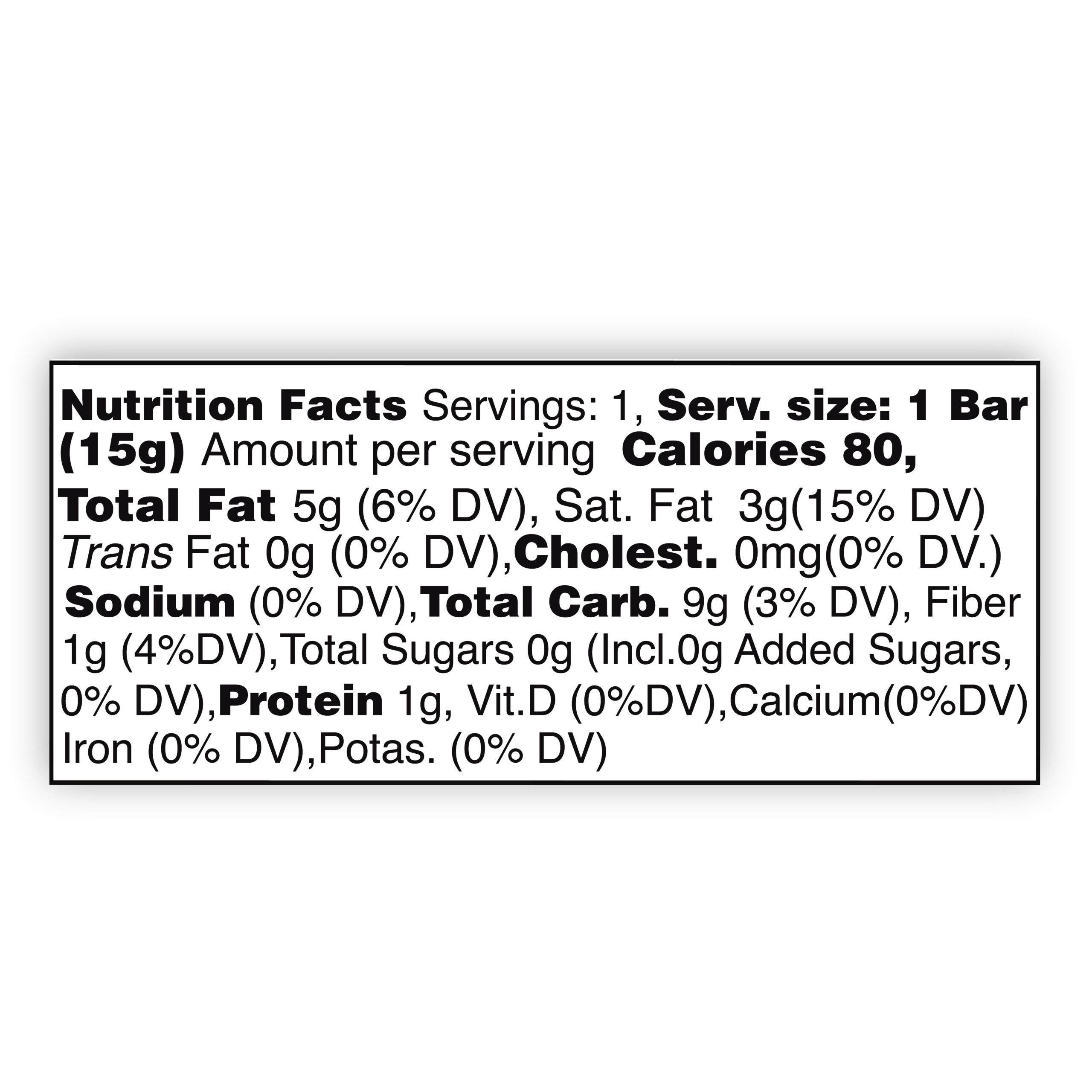 Ingredients: organic cocoa mass, allulose, cocoa butter, and quinoa.